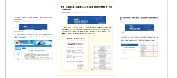 喜讯来袭!沈阳鸿宇科技有限公司再获行业权威认可,在斩获辽宁省、沈阳市、鞍山市、朝阳市、辽阳市中小企业数字化转型服务商资质后,成功入选大连市第二批智改数转服务商公示名单,这份由大连市工业和信息化局发布的公示结果,是对鸿宇科技技术实力与服务能力的又一高度肯定!