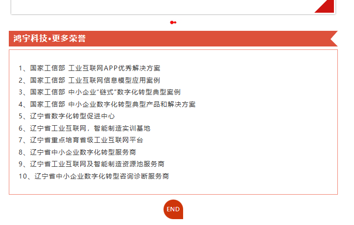 此次入选大连市智改数转服务商,既是荣誉,更是责任。未来,鸿宇科技将继续发挥技术与经验优势,为大连及周边地区制造企业提供全流程智改数转服务,从方案设计、项目落地到运营优化,全程陪伴企业完成数字化升级。
