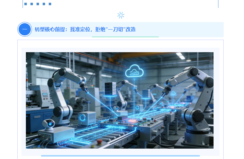 ·梯次推进,不搞全域铺开:遵循“单点突破—局部集成—全域智能”的路径,先试点核心产线或关键工序,验证成效后再全面推广,降低转型风险。