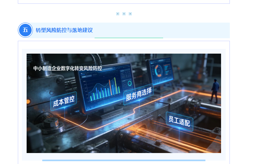 中小制造企业数字化转型,最怕“急功近利、盲目投入”,做好风险防控,才能保障转型稳步推进: