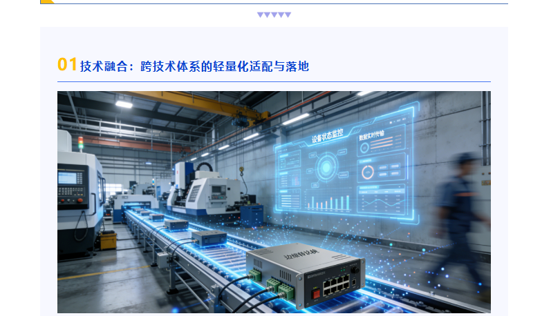 中小制造企业数字化转型的技术痛点,往往不是单一技术的缺失,而是不同技术之间的“孤岛效应”——传感器采集的数据无法对接工业软件,云系统与本地设备协议不兼容,自动化设备与生产流程脱节。技术融合的核心,是打破技术边界,实现物联网、边缘计算、工业软件、自动化设备的轻量化适配,让技术体系围绕生产场景形成合力。