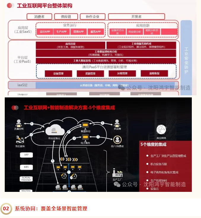 PLM、ERP、MES、WMS、APS、QMS 等核心系统协同运转,让订单、生产、设备、物料、客户信息全程贯通,实现生产、运营、供应链、设备、服务五大维度的一体化管理。