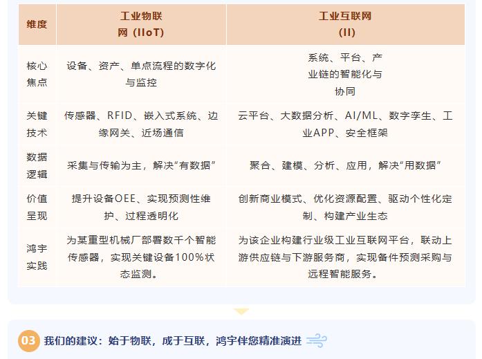 简而言之,工业物联网关注“如何获取和连接数据”,工业互联网则致力于“如何利用数据创造智能与协同价值”。