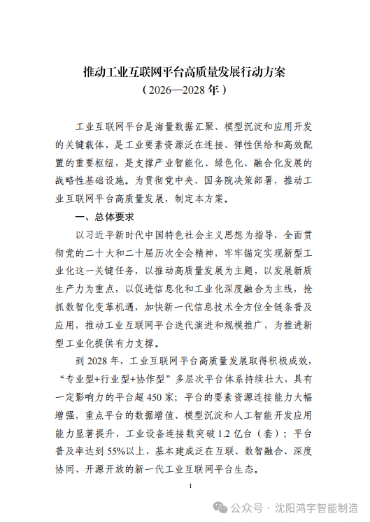 为深入贯彻党中央、国务院有关决策部署,加快工业互联网创新发展,工业和信息化部组织编制了《推动工业互联网平台高质量发展行动方案(2026—2028年)》。现印发给你们,请结合实际抓好落实。