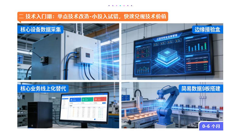 对于数字化基础薄弱的中小企业,无需急于全域布局,核心是从生产核心痛点切入,开展单点技术微改造,以极低的投入完成技术落地试错,让企业管理层和一线员工直观看到数字化价值,为后续升级积累经验、凝聚共识。