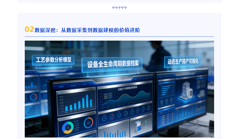 数据是数字化转型的核心资产,但多数中小制造企业仅停留在“数据采集与可视化”阶段,海量生产数据未能转化为生产决策的依据。数据价值深挖的关键,是从“数据记录”转向数据建模与智能应用,让数据成为工艺优化、设备维护、生产排产的核心驱动,实现数据的全生命周期价值挖掘。