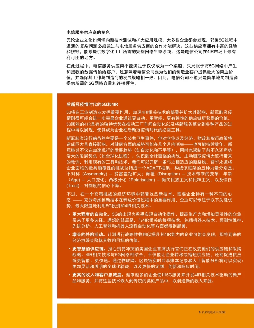 5G也许无法立即提升4IR的内在生产力,但无论哪个制造商都无法忽视它的潜力,在不久的将来,5G将助力工厂实现许多新技术和新流程的应用。