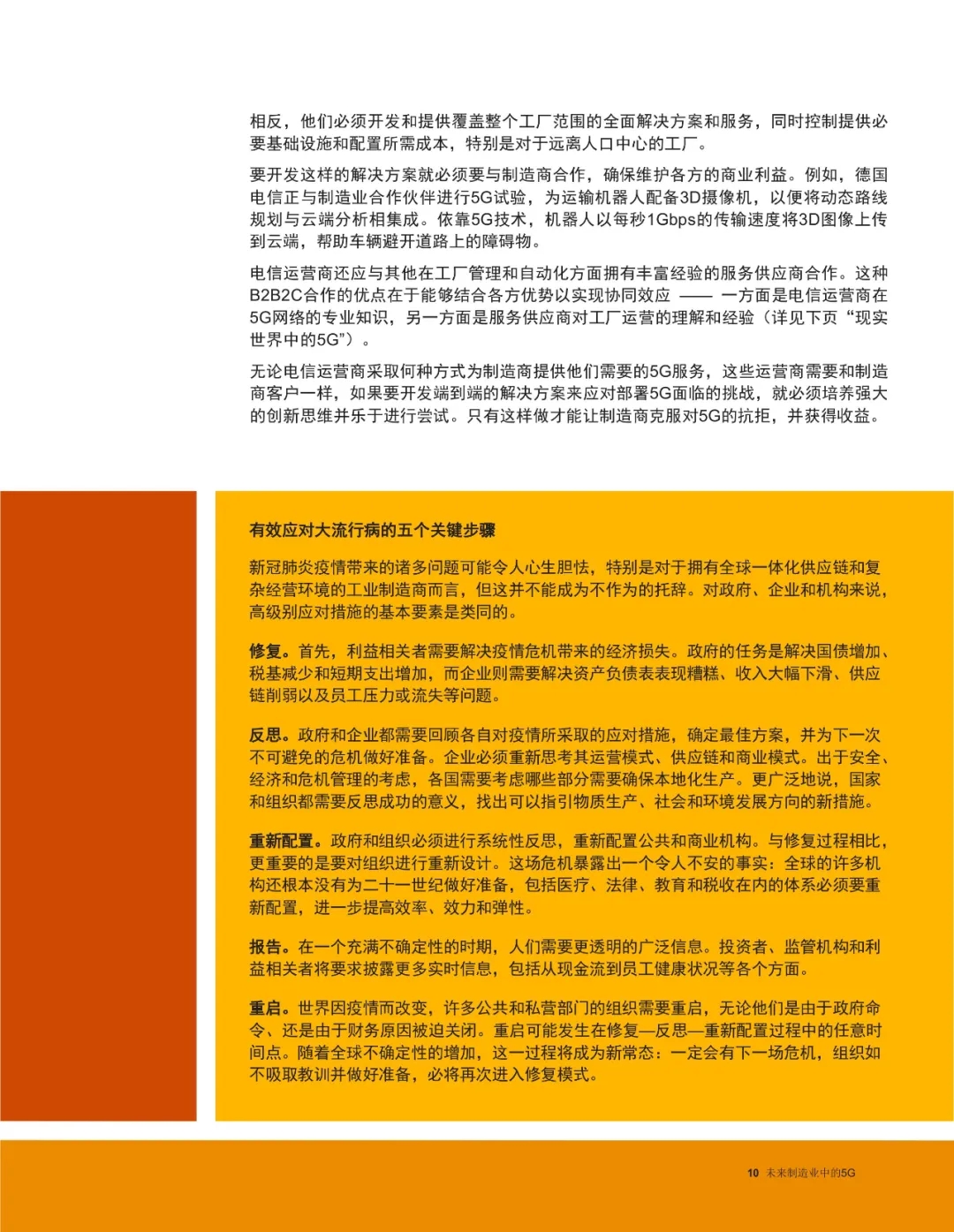 ▶安全。各种传感器的应用和5G接近瞬时的响应时间,将营造十分安全的制造环境,现场所需的员工更少,紧急关闭信号响应更灵敏。