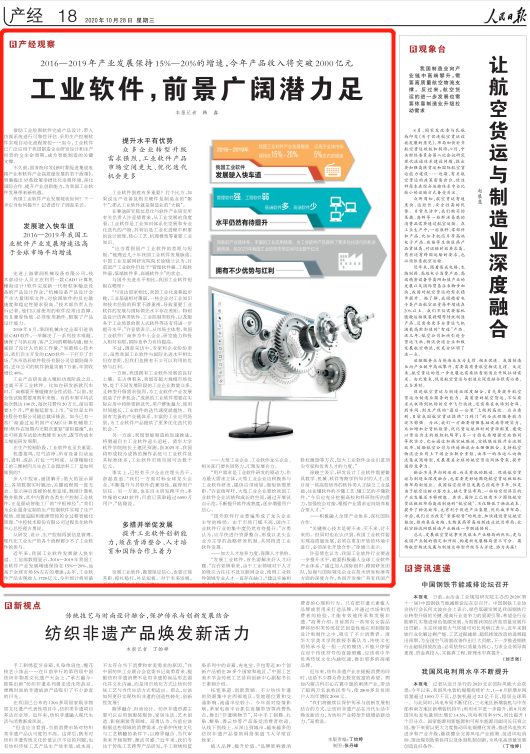 【行业资讯】人民日报:工业软件,前景广阔潜力足