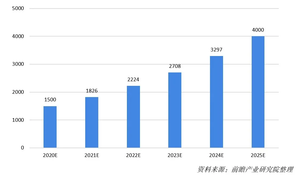 ▼图表:2020-2025年数字经济关键技术市场规模预测(单位:亿元)