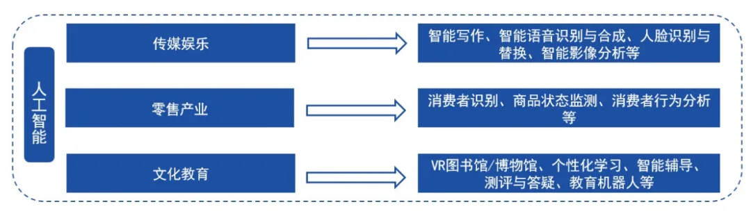 ▼图表:人工智能催生行业新业态图谱(传媒与娱乐、新零售、文化教育)