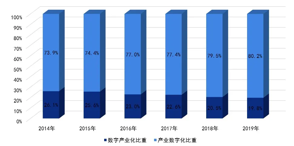 ▼图表:2014-2019年中国数字经济内部结构情况(单位:%)