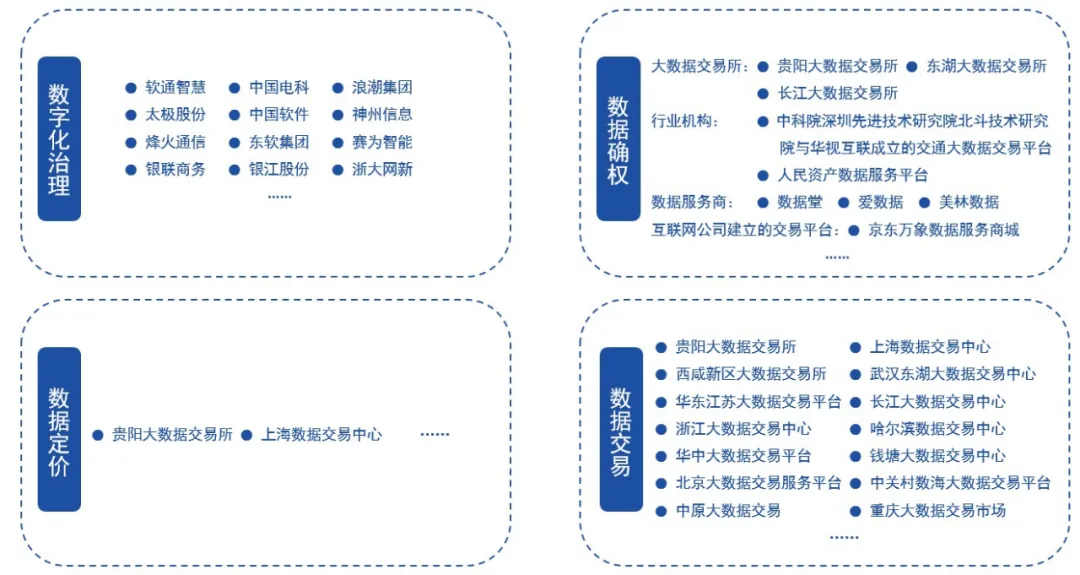 数据价值化包括但不限于数据采集、数据标准、数据确权、数据标注、数据定价、数据交易、数据流转、数据保护等。目前我国在数据采集、数据标注、时序数据库管理、商业智能处理、数据挖掘与分析、数据存储、数据安全、数据交换等环节形成了较为清晰的产业体系,数据要素供应链条逐渐完备。
