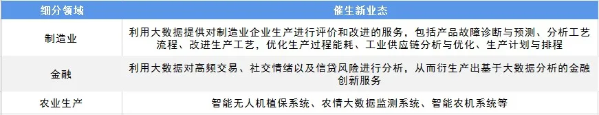 大数据是数字经济的关键生产要素。通过数据资源的有效利用以及开放的数据生态体系使得数字价值充分释放,驱动传统产业的数字化转型升级和新业态的培育发展,大数据在与各领域融合发展的过程中,催生出了许多新型的业务形态。