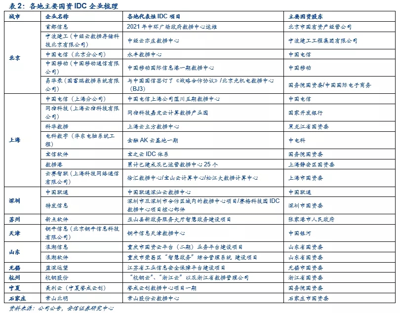2、IDC:从目前已经公开的各地国资云来看,主要建设与运营方基本均是地方国资企业,地方国资IDC有望最大程度受益区域性国资云的建设与托管运营需求。此次天津《实施》明确提出,不满足等保二级要求的机房的信息系统将迁移至国资云机房,同时各目标企业原则上不再新建、升级或扩容数据中心(机房),因此,国资云所在的IDC将得到相当规模的扩张机遇。