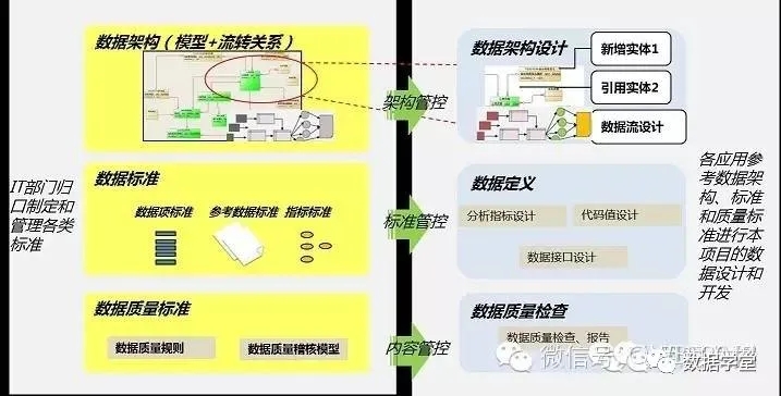 从宏观到微观,数据的形态体现为数据架构、数据标准和数据质量标准。