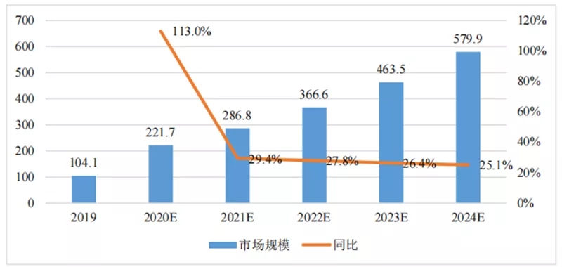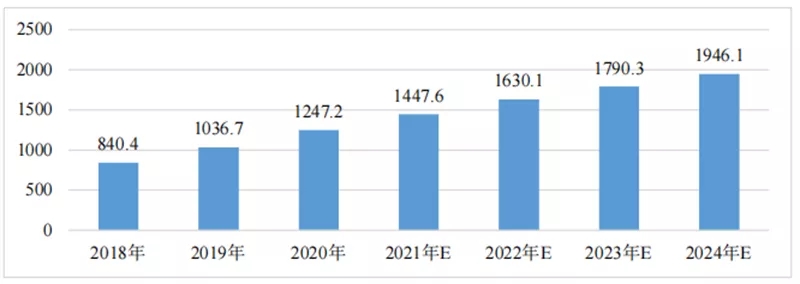 RFID(Radio Frequency Identification)。伴随 RFID 技术的快速发展与应用的深化,未来射频识别技术在性能等方面将会有较大提升,成本也将逐步降低。今后 RFID 标签产品将更加多样,技术应用系统网络化发展趋势更加明显、系统的兼容性愈发良好,并且随着技术的成熟,RFID 与其他产业融合进一步加深,RFID 将在门禁管理、防伪识别、生产的自动化及过程控制、人员管理等领域得到应用和推广,RFID 产业发展潜力巨大。根据锐观咨询整理的数据显示,2020 年我国 RFID 市场规模已达到 1247.2 亿元,相比 2019 年增长 20.3%,预计 2024 年将达到 1946.1 亿元。