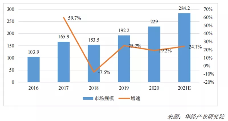 ▲ 2016-2020 年我国智能网联汽车产业规模及同比增长(单位:亿元,%)