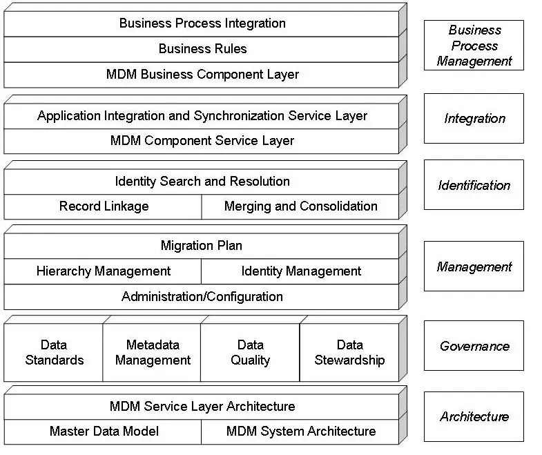 MDM体系结构包含三层,即:主数据模型、MDM系统架构和MDM服务架构。
