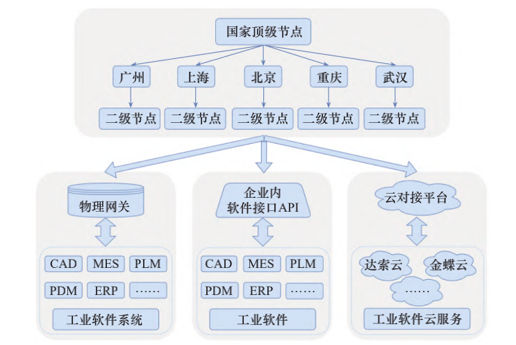对于工业企业,依靠工业软件提升工业产品价值、降低企业成本、提高核心竞争力,是“两化融合”重要的切入点和突破口,因而推动工业软件一体化是领域亟需。作为数字世界的身份证,标识解析系统是驱动工业互联网创新发展的关键核心设施;与物理网关、接口平台、云一体化技术结合,可降低工业软件一体化成本,提升工业软件服务能力,赋能全产业链互联互通(见图 2)。