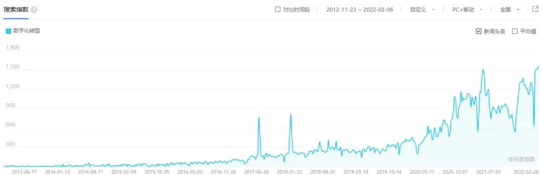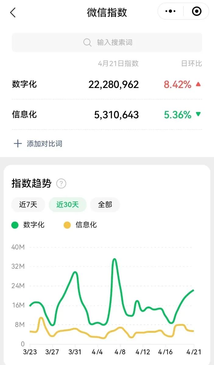 在2022年的微信指数上也能看出,数字化的搜索指数已经远超信息化了。