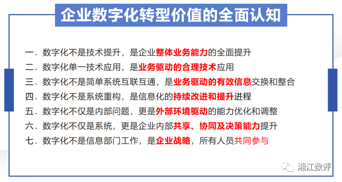 7.数字化不是信息部门工作,是企业战略,所有人员共同参与;