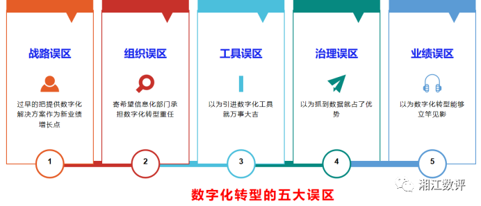 但遗憾的是大部分的企业未真正认识到、深刻理解数字化转型的含义,只是片面的认为数字化转型只是技术升级、是技术部门的事情,从而进入以下五大误区: