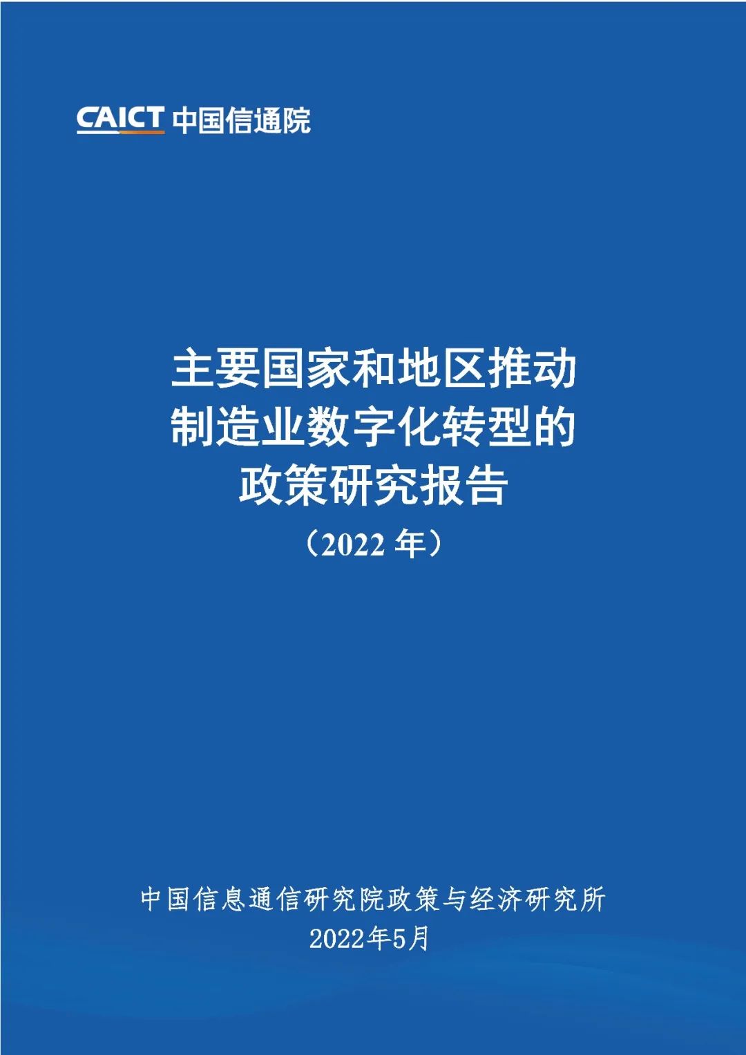 近期,中国信息通信研究院发布《主要国家和地区推动制造业数字化转型的政策研究报告(2022年)》。