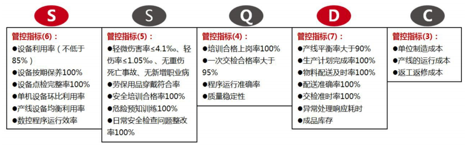 根据精益管理的“七零”项点,按照设备、安全、质量、交付和成本五大方面(S2QDC),将采集上来的过程数据进行综合分析,形成评价各产线、各区域的考核内容汇总形成逐级所需的信息进行展示和推送,在设计、生产、质量和管理不同层级,按人员角色、管理层级对数据进行利用,形成推动企业发展的动力。