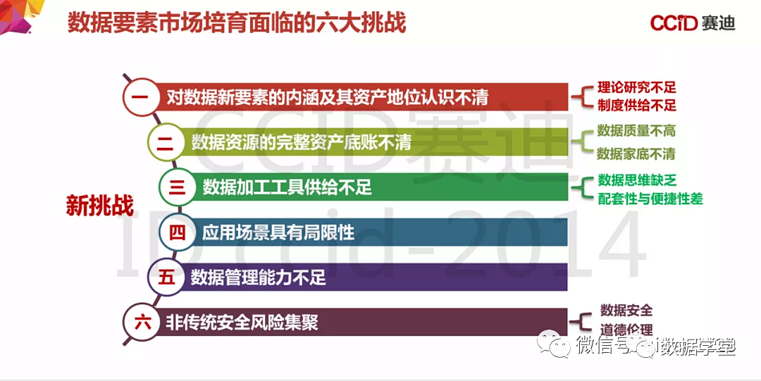 数据如水,有序流动,滋润经济,势不可挡;数据如水,阻断流动,降低效率,必治而用。正是数据的这些特征,导致我们面对数据这样的汪洋大海,有些望洋兴叹、不知所措。数据要素市场的培育面临着很多挑战,是一个国家层面的重大难题,其主要核心的问题表现在六个方面。