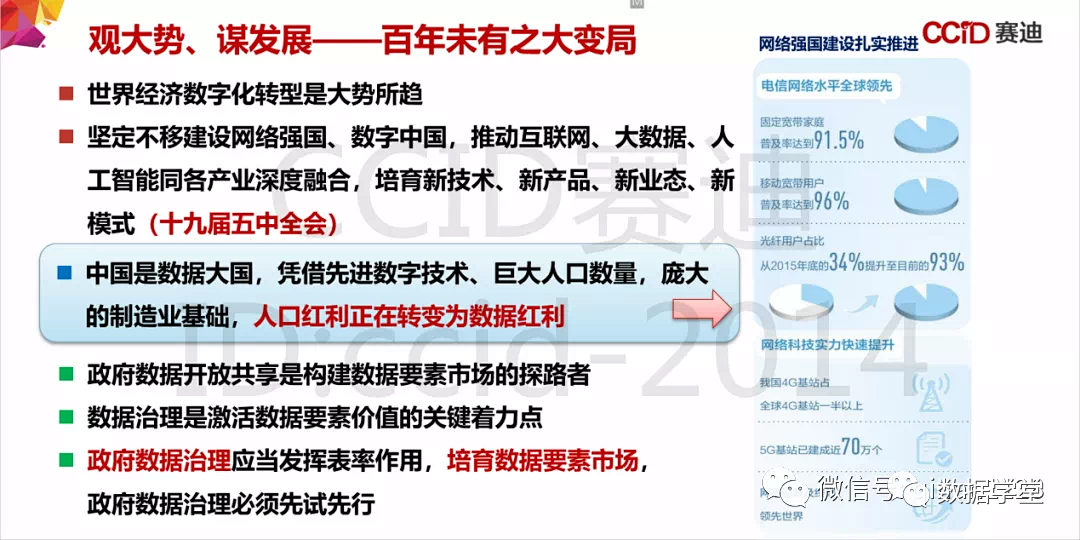 从数据治理视角来讲,我国正处于数字革命与产业变革的交汇期,开始从一个制造大国向数据大国迈进。从观大势谋发展的角度来看,我国正面临一个千载难逢的数据发展战略机遇。