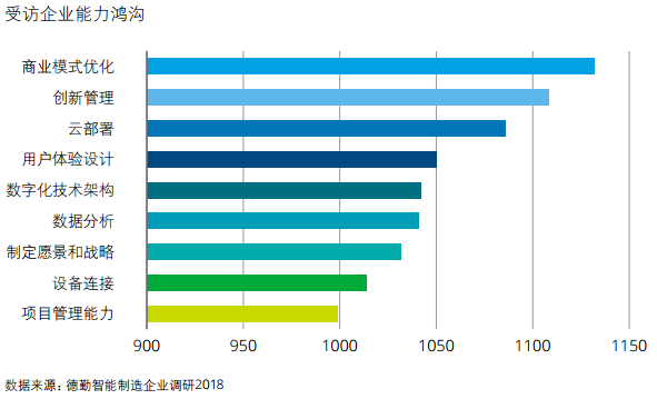 ▲受访企业亟待提高的能力(企业自我评估权重打分,分值越高能力越弱)