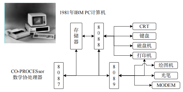 常规显示器、键盘、磁盘机和打印机已无法满足CAD软件使用,必须添加新外设,例如绘图机、光笔、TABLE‐LAT(光学版,那时没有鼠标)等。然而,外设增多将导致8088CPU处理能力下降。为此,需要在计算机外加一个8089通道处理器,专门处理外部设备数据输入输出。此外,当时8088、8087、8089这3个芯片构成了控制、数学计算和外围设备处理的核心计算机。