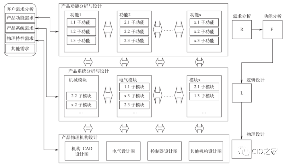 第一,基于 MBSE 方法论的产品管理,严格基于需求(R)-功能(F)-逻辑(L)-物理结构(P)的架构来构建产品模型,MBSE 中会首先将原始需求进行分类,分成诸如商业、功能、性能和物料需求等,模型中接下来的环节,都将严格按照某一项需求逐级展开,不同于传统的产品设计团队独立于市场团队,基于 MBSE 方法论的产品设计,将市场团队视为产品研发流程中最前端也最重要的伙伴,每当需求变化,相关信息能够迅速传递到后续环节中的所有团队,帮助团队成员及时感知变更,并响应变更。在前文中列出的响应慢的问题,就可以获得解决。