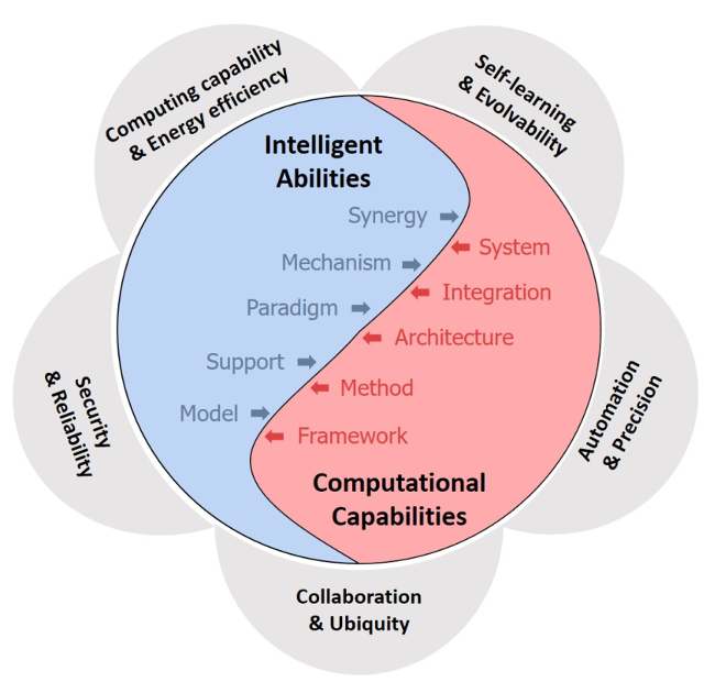 两种基本范式从五个方面进行创新,提升计算能力、能源效率、数据使用、知识表达和算法能力,实现泛在、透明、可靠、实时、自动化的服务。