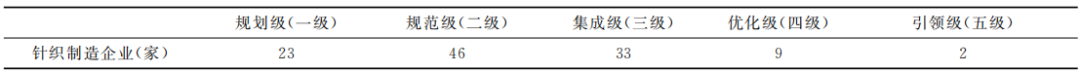 表7 针织服装制造企业数字化转型成熟度评价结果