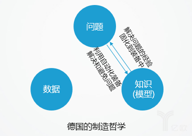 问题和知识是目的,而数据则是手段。在上图的要素中,把数据换成人,就是“工匠精神”,换成“自动化产线和装备”就是“工业4.0”,换成互联网就成了“互联网+”。