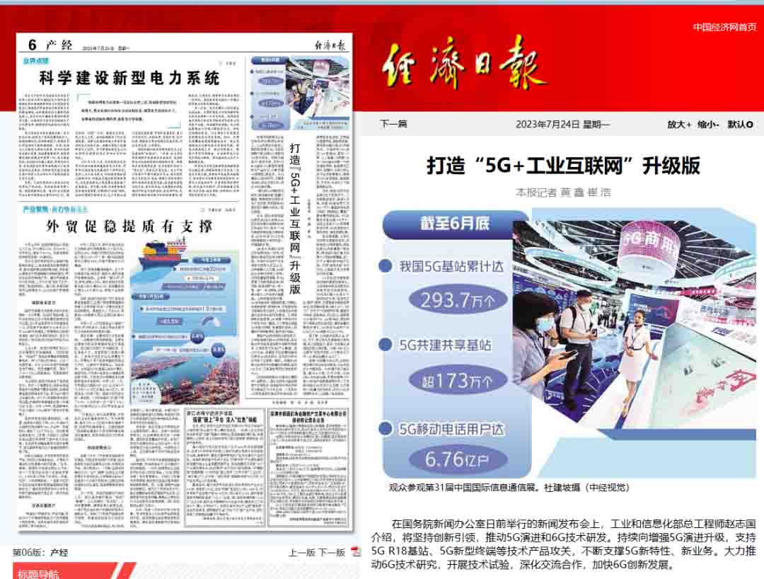 【行业资讯】经济日报:打造“5G+工业互联网”升级版
