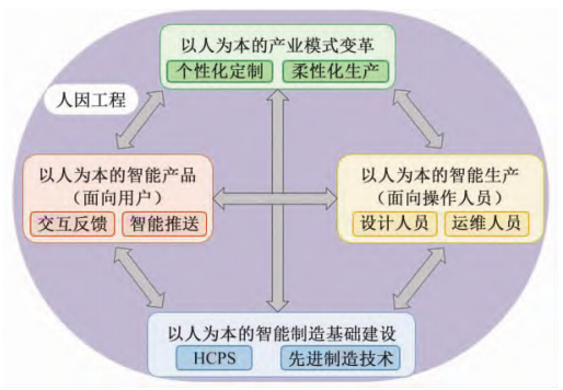 除此之外,中国工程院智能制造课题组的研究报告指出:“智能制造系统是一个大概念,一个不断演进的大系统,是新一代信息技术与先进制造技术的深度融合,贯穿于产品、制造、服务全生命周期的各个环节及相应系统的优化集成,不断提升企业的产品质量、效益、服务水平,减少资源消耗,推动制造业创新、绿色、协调、开放、共享发展”,是我国制造业升级的发展方向,也与智能制造中的人的因素形成呼应。考虑“以人为本”的智能制造,即从“人本智造”的四个维度出发,在设计之初就充分考虑用户需求和人的因素,根据消费者或目标用户群的定位,利用互联网、虚拟现实、多视角共享等智能技术,使用户直接参与设计、研发、测评等环节。针对生产环节的设计或工作人员,利用知识工程、机器学习、自然行为交互等研究成果,开展人机协同设计、人机协作装配、以人为本的生产管理等研究,全面提升产品设计、制造和管理的水平。